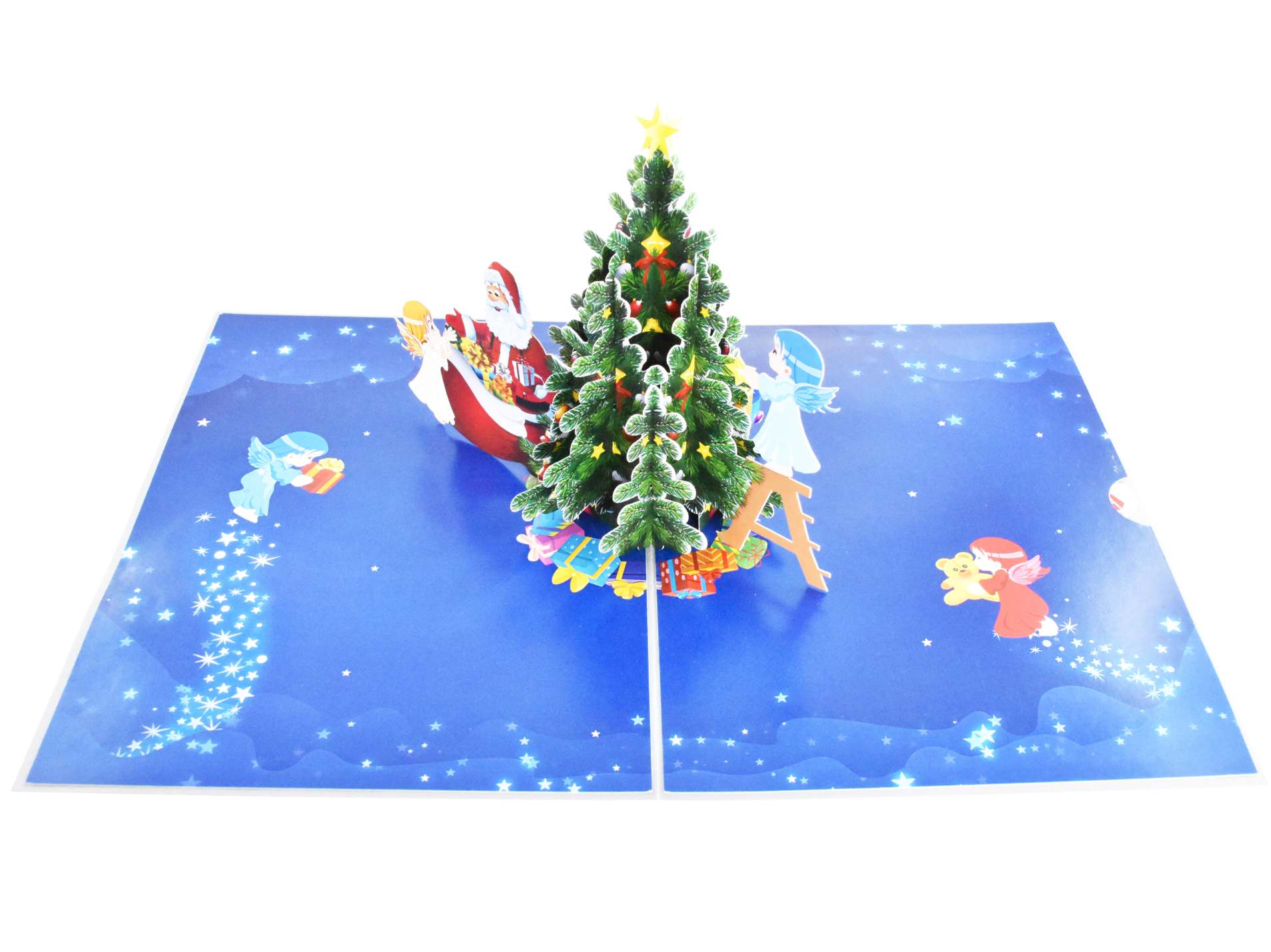 Angels decorating Christmas Tree Pop Up Card