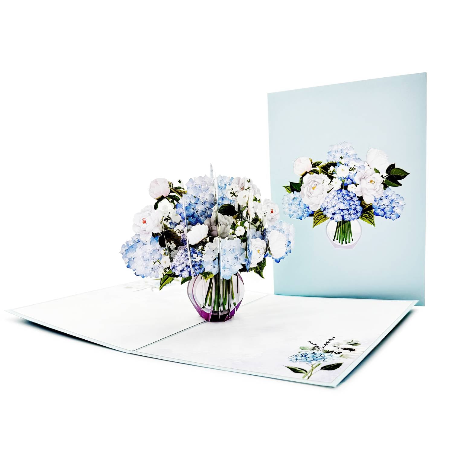 Blue Hydrangea and Peony Flower Bouquet Pop Up Card