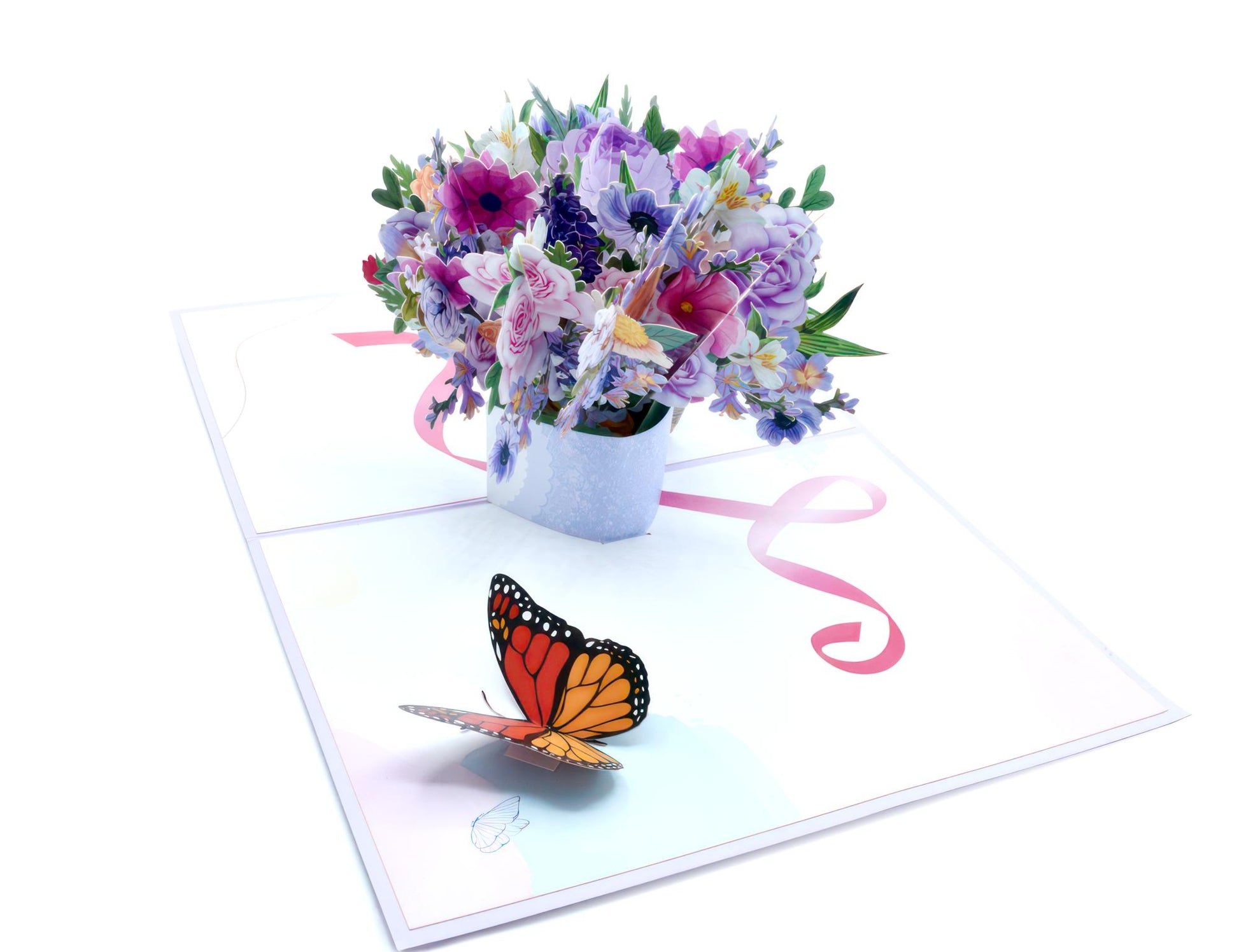 Box of Flower Bouquet for Mothers Day, Anniversary, Birthday Pop Up Card