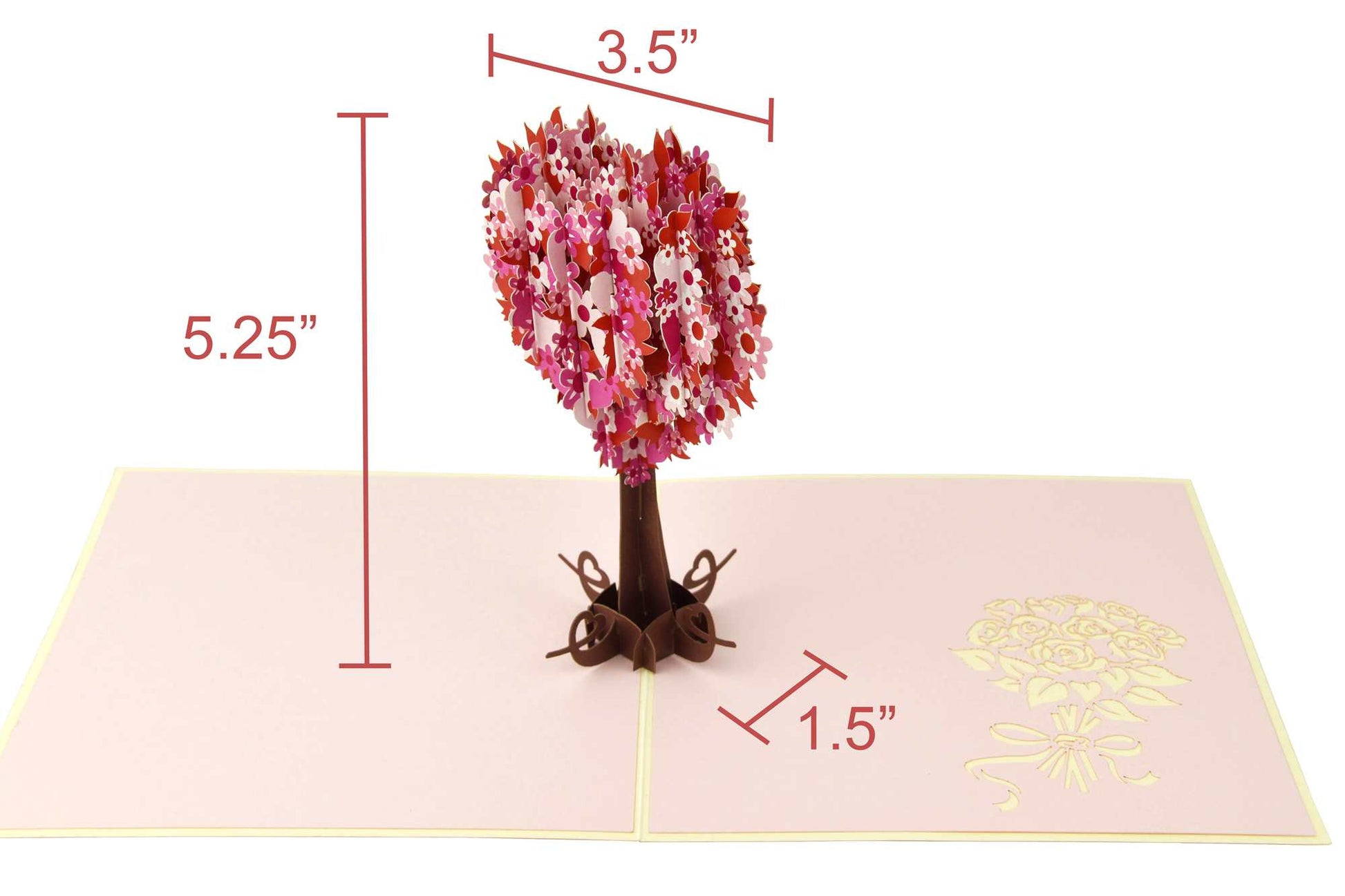 This Heart Shaped Cherry Tree Pop Up Card is the perfect way to express your feelings and show someone special how much you care. A stunning 3D display of a heart shaped cherry tree with cherry flowers blooming will surely leave an unforgettable impression.