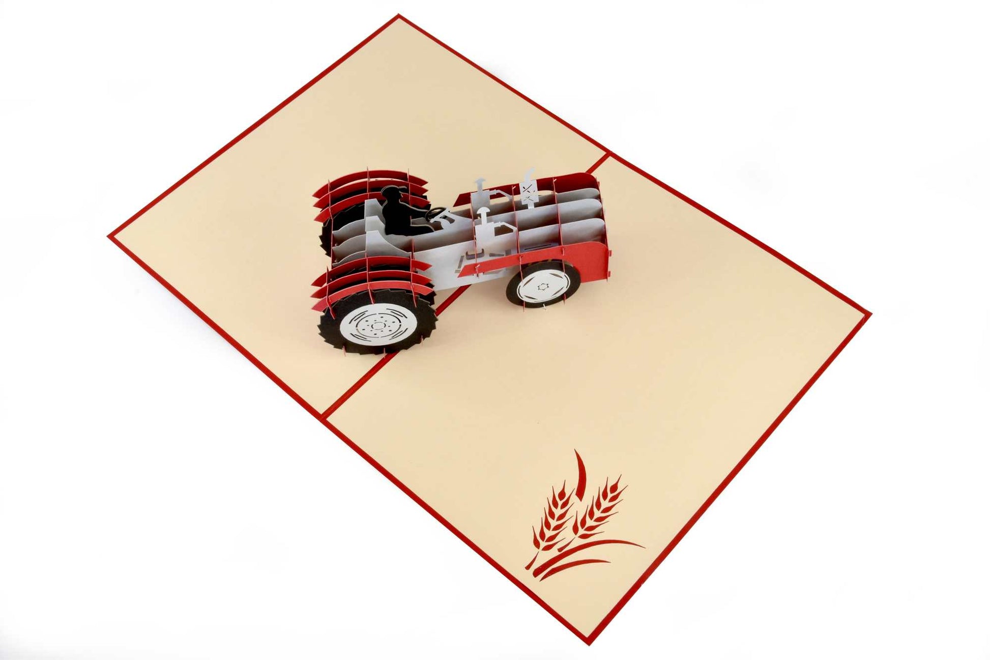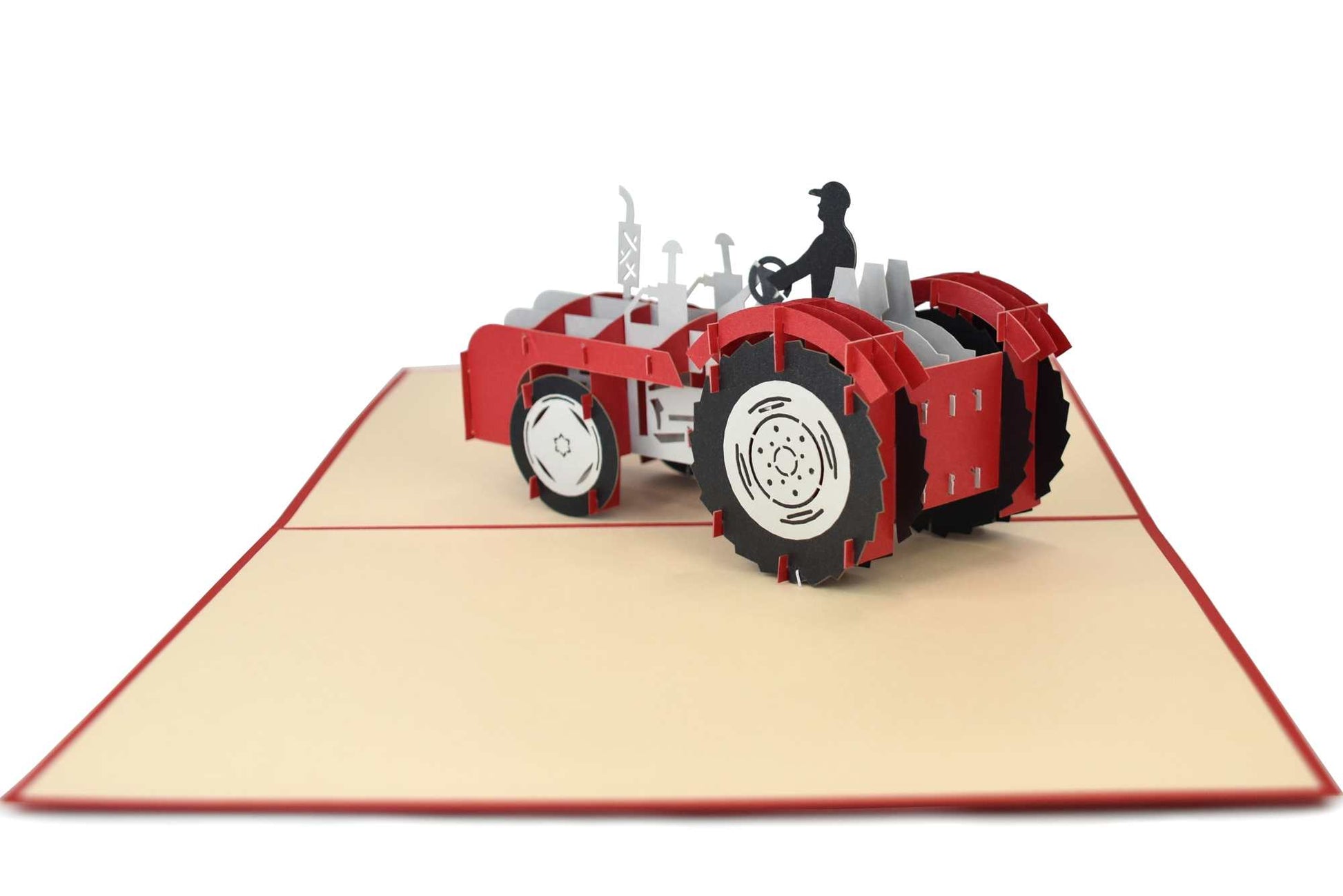 This unique tractor pop up card is a great way to surprise and delight anyone who loves tractors! This 3-dimensional creation features an incredibly detailed red tractor with its operator, just waiting to be brought to life.